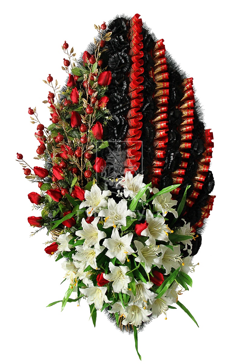 Не менее важной составляющей ритуального венка или корзины считаются сами цветы. Их окрас подбирается в индивидуальном порядке.