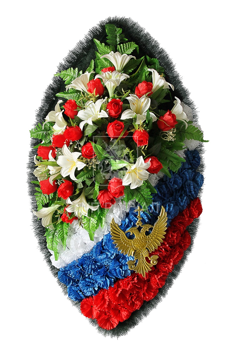 При похоронах военного предпочтение стоит отдать венку в цветовой гамме российского флага, чтобы подчеркнуть особый статус умершего.